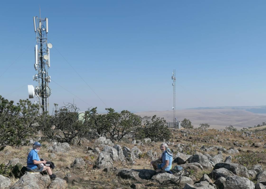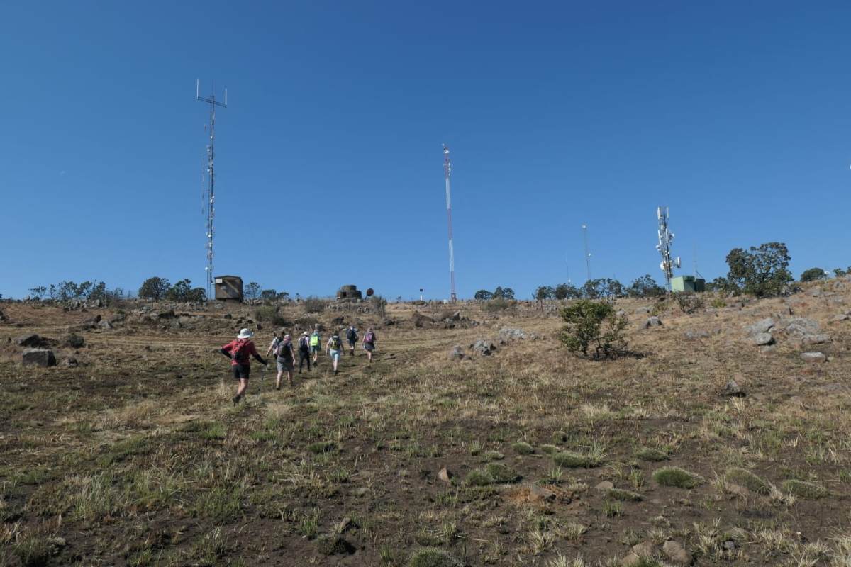 Again we tackled the steep terrain through thick trees towards soft and welcoming grassland as we saw the beauty unfold before us. The natural ability of each hiker created the socially acceptable gaps that made each of us feel comfortable. Regrouping at a beautiful midway point we sat in the long grass and appreciated the silence and gentle breeze that only the top rewards. Rested briefly and all together, we made the final accent to the top of Gilboa, dotted with many signal towers. The infamous beacon was photographed. The view although hazy, was spectacular, and so lunch was enjoyed by us all.