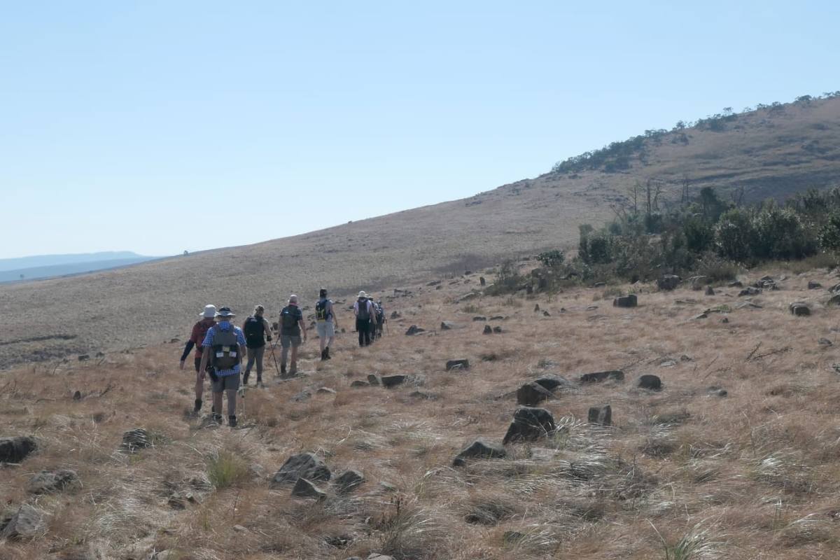 Meeting at the beautiful Bushwillow Caravan Park, masked and sanitised on the fresh, crisp morning of Sunday the 26th July 2020, 10 hikers listened attentively to their hike leader, Neville Lee, as he explained the unknown trail they were about to embark on. The first half an hour came with a warning that it was to be the most difficult part of the day hike. But take heart that the sun at the top will shine as emerging from the forest promises.