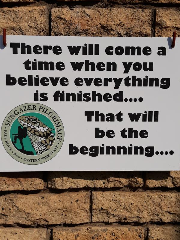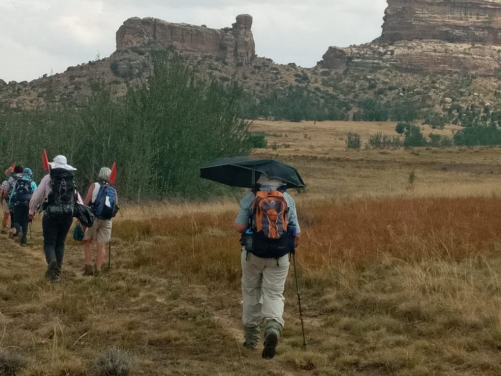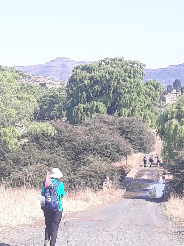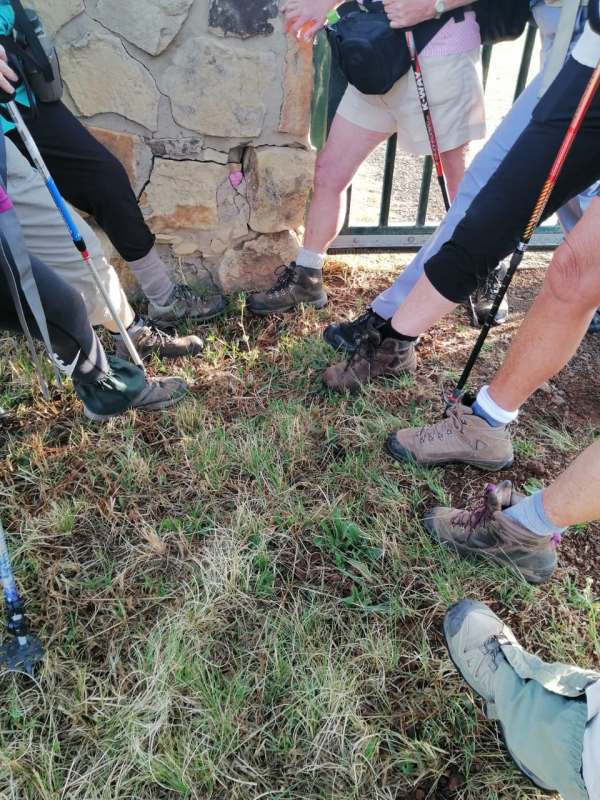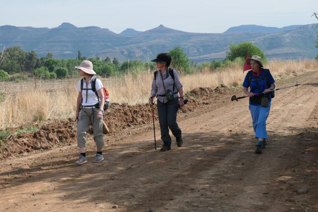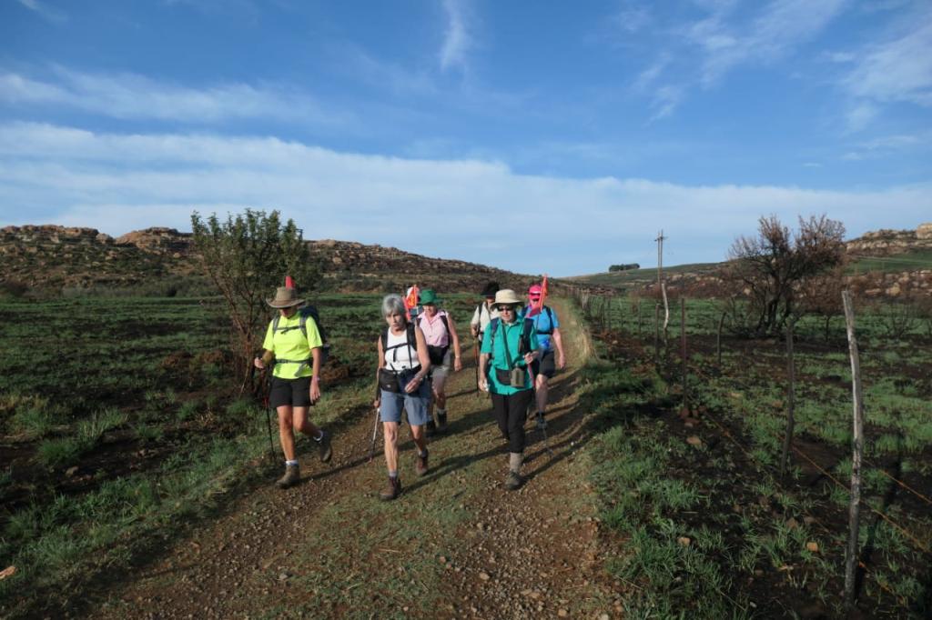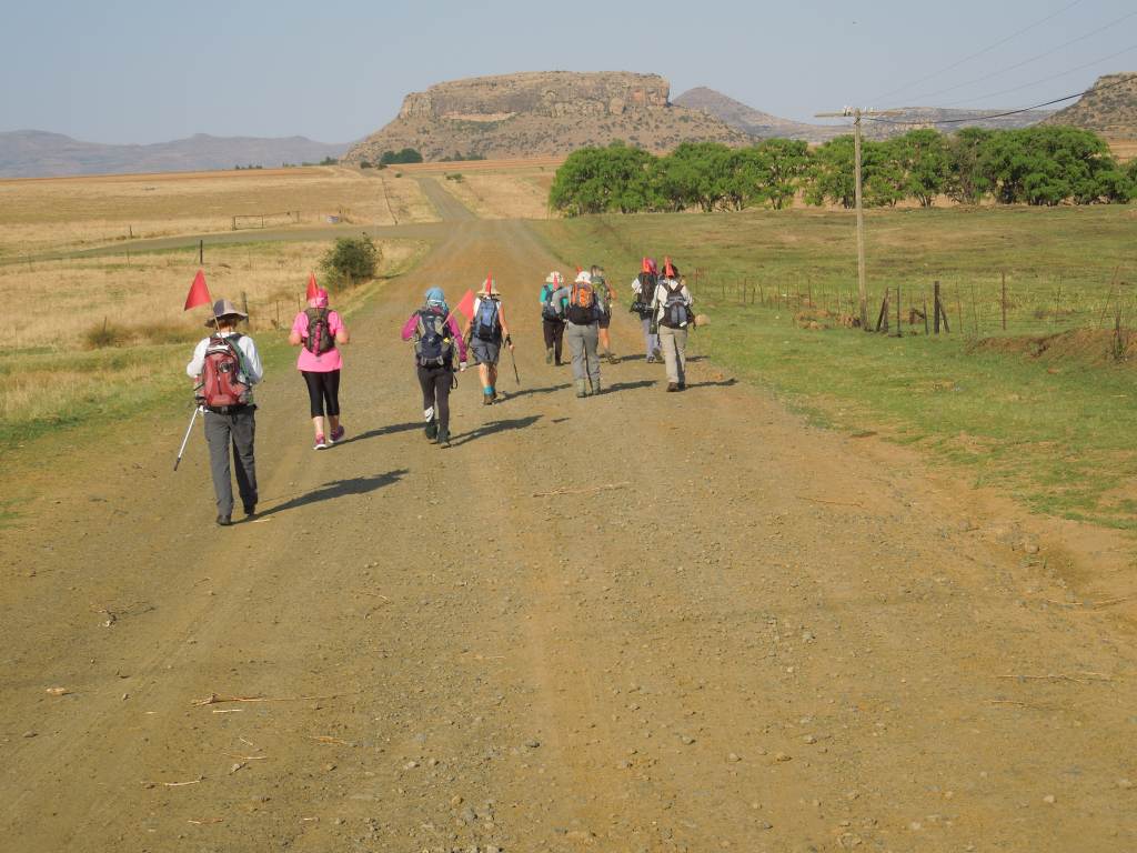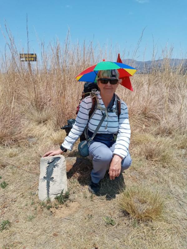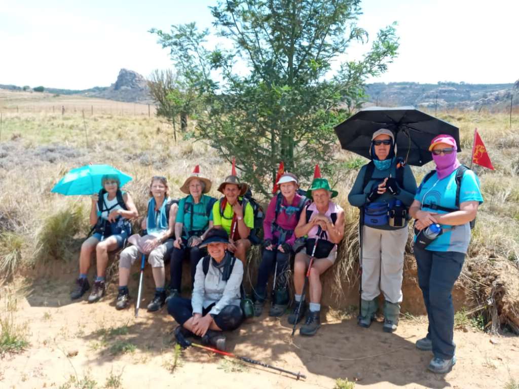 The Sungazer Pilgrimage offers various routes, from 11 days to just 2. Carolee, our subsequent leader, read an article in the Go Magazine on the Vinnige Willemien route over 87kms and 4 nights and in June the word went out - it was a fixture to MHC members. 10 of us took up the challenge and started training. Approximately 22kms a day on hard roads and in intense heat, no one could have imagined just how demanding this challenge was to turn out. Having said that though, our eldest hiker was 78 (Margret Kirsten) and the youngest was 61 (Ali Engelbrecht), we had an average age for the group at 67!! some far fitter than others!! but we were a team, up at 5am to leave by 6 we walked together, worked at it together, laughed together and have all come home much richer for forged friendships and engraved memories.