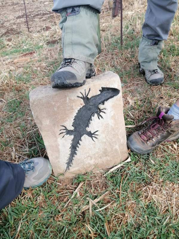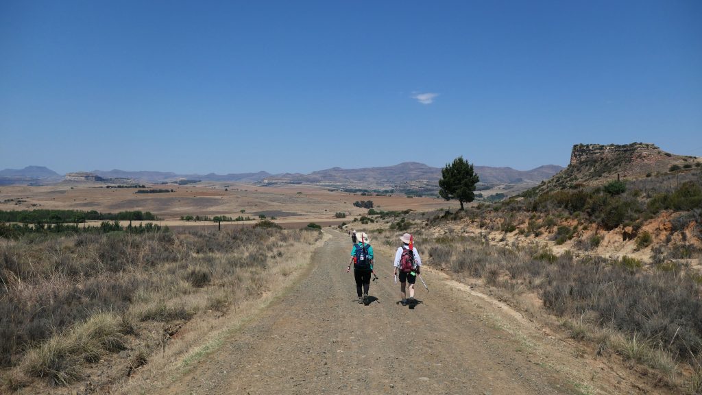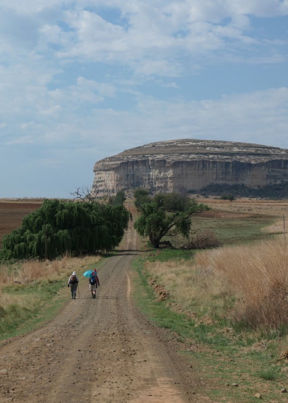 Day One had us taken to the start by taxi to the Slabberts Farmers Association Hall. Surrounded by the beautifully carved sandstone of the Malutis which was to follow us for the entire trip. With the unfamiliar weight of our water supplies and already high temperature, it wasn't long before we stopped for a breakfast break. We had chosen to do slackpacking, so our main bags were transported to our next overnight. On the way back, the driver checked our water supplies and then waved us off, we were on our own from here! The first day is always the worst as they say!! We made use of every tree along the way, shade and a brief sit down was so welcome.