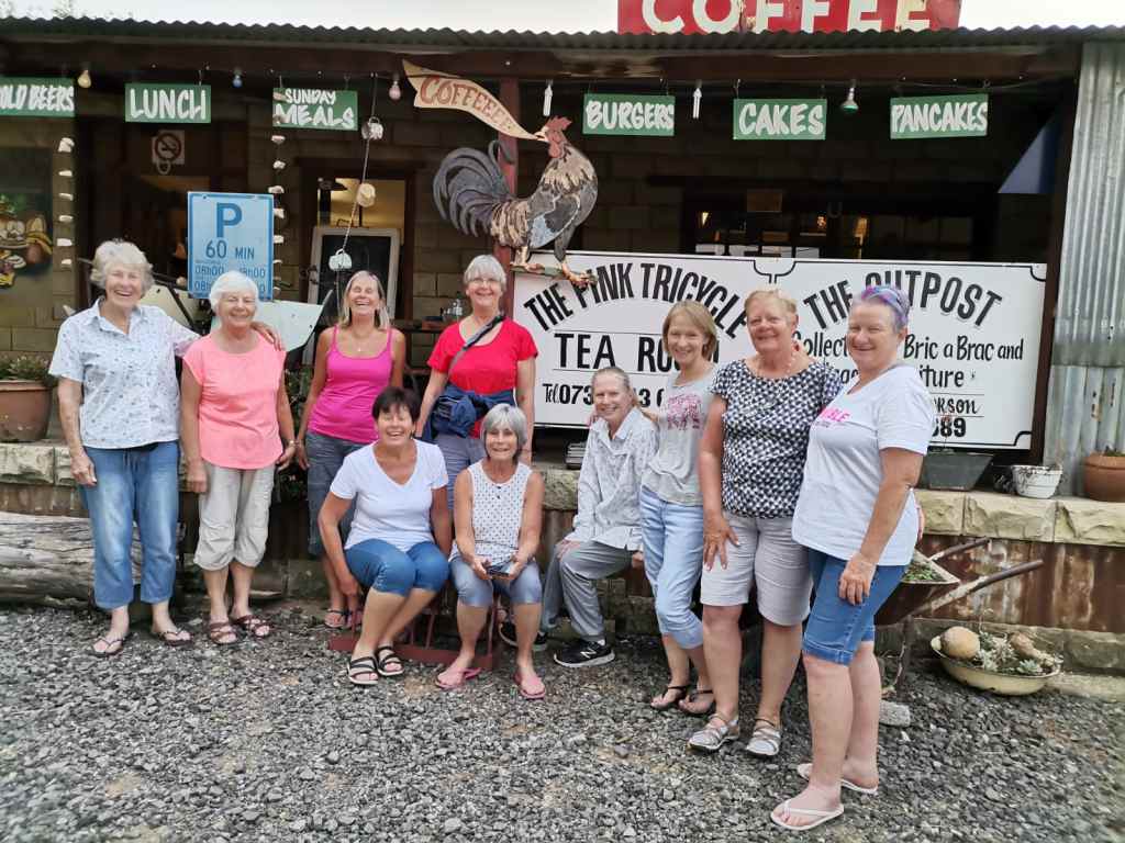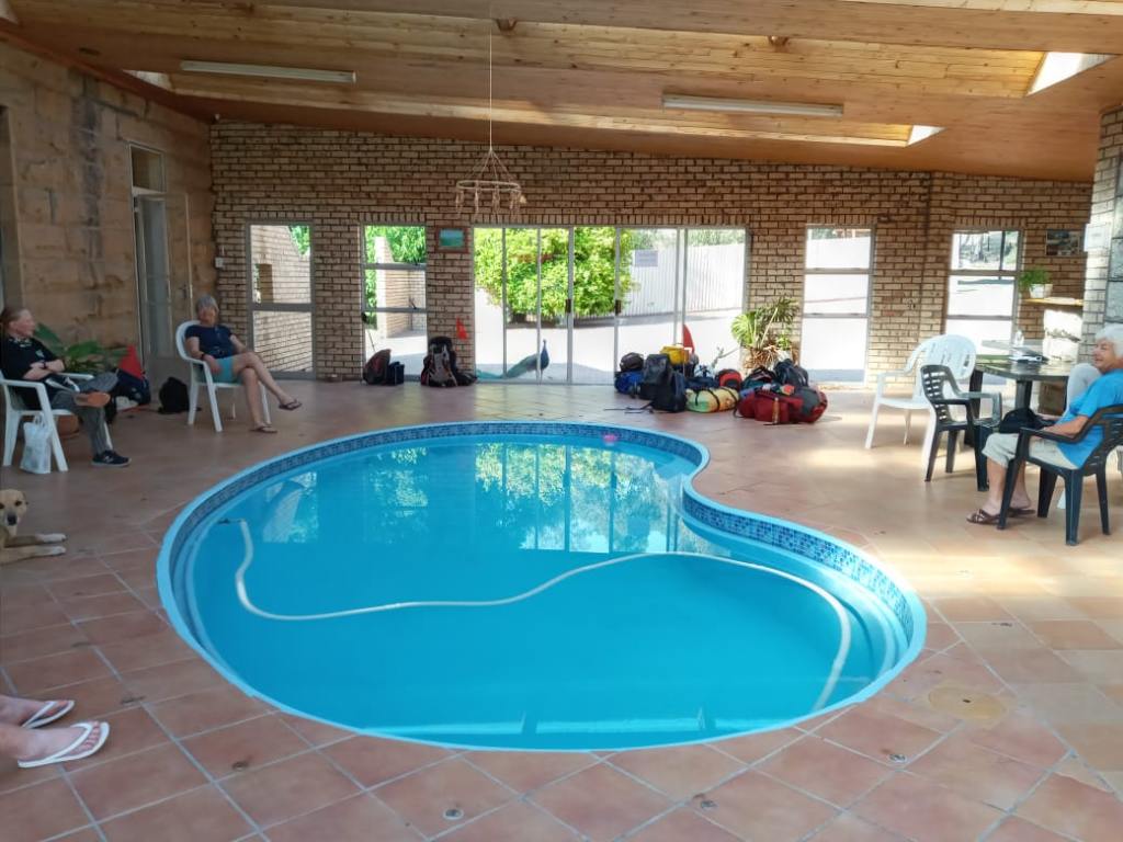 We all changed into costumes for the pool dip today as the family were home and children on holiday!! followed by a yoga stretch and relax workout from Carolee. Supper was sumptuous!! Then came the morning ![]() ![]() Day 4: Our last day was memorable in its own way with the road taking us through working farms, over stiles across railway lines and through the forest to finally reach Malutizicht Guest Farm just as a storm was about to break. Another long but rewarding day. Our hostess was a lady named Evelyn, who had worked on the farm since a young girl. She had seen ownership change faces several times and was now in charge of the Lodge as the current owner was not resident. A beautiful old building, again with a magnificent veranda and boasting an indoor pool and resident peacock. There was a second house with several rooms and lounges where the other half of our group took up the bedrooms. The two houses were connected by a tunnel!! How clever! We were entertained for a short while by Andre, our farmer/neighbour/luggage transfer man, who told us interesting and amusing stories about the area.