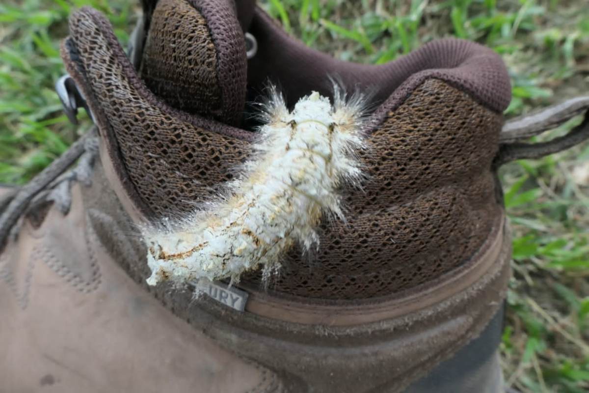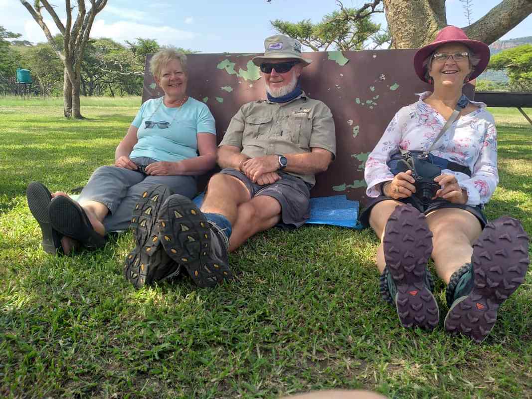 After lunch, the hardy bunch left for an afternoon walk, it was now very hot and humid. Those that stayed behind sat on the soft grass in the shade of the trees, pulled up a trellis table and sat back, reminiscing, quietly watching a feathery caterpillar climb over a discarded hiking boot.