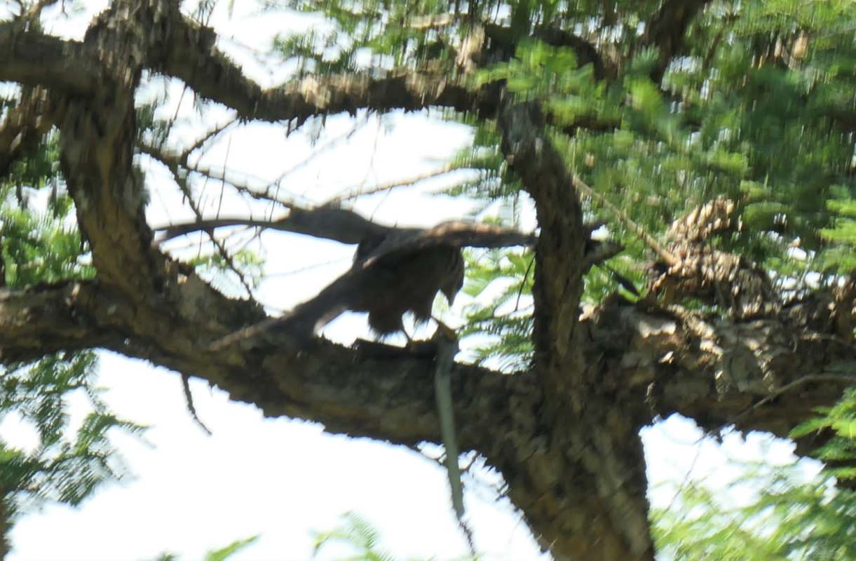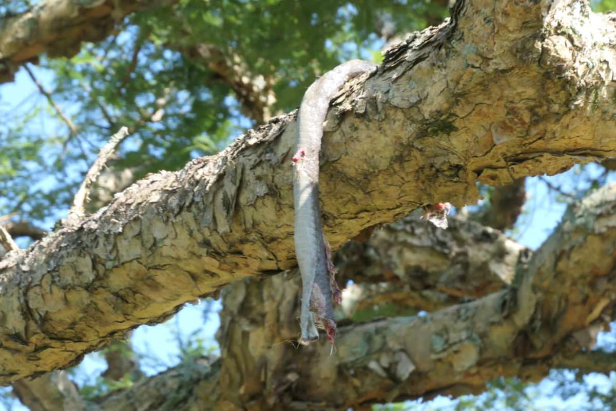 When we arrived back at the picnic site, the yellow billed Kite once again stopped between mouthfuls to wait it out from a distance, leaving a very mangled Mamba hanging enticingly behind.