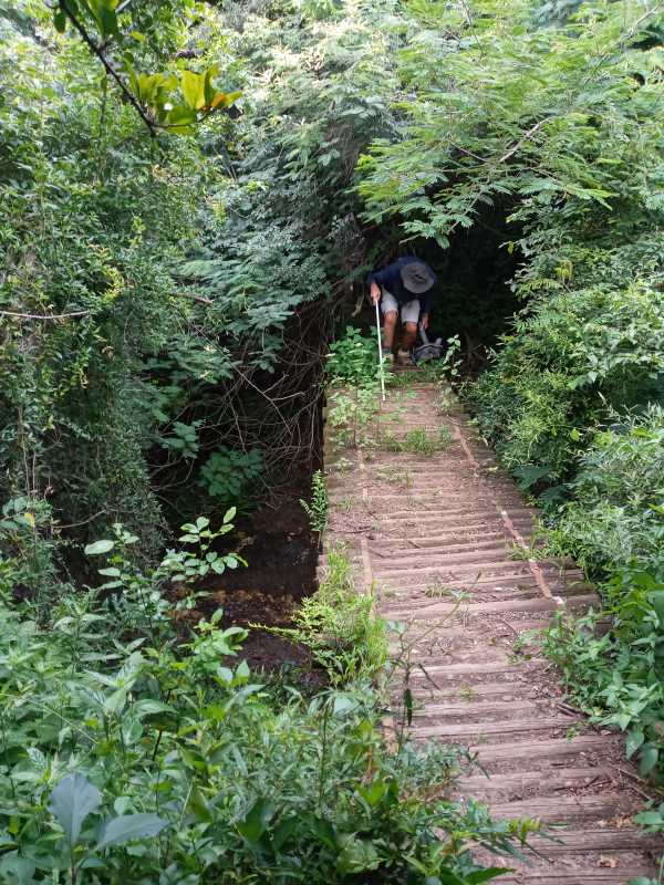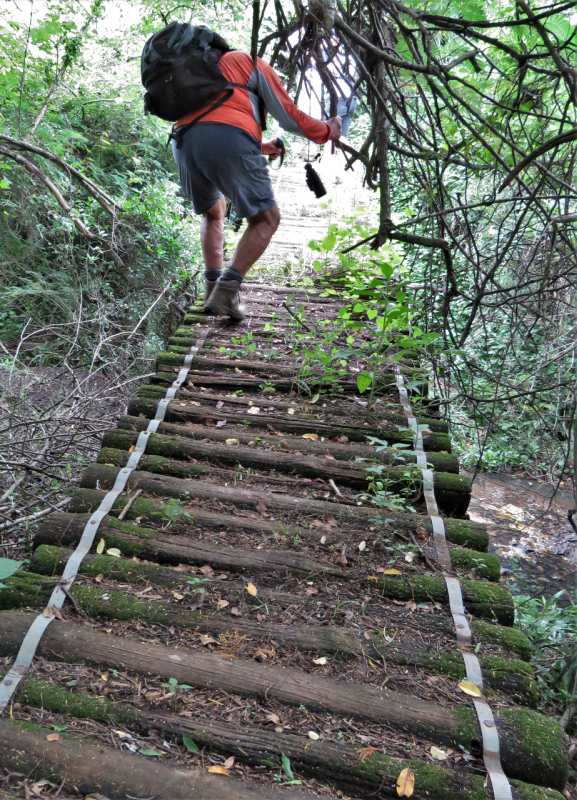 We encountered a few obstacles too - all part of hiking - we had to creep low under tangled vines crossing a rickety wooden bridge over a stream. Later we met a long stretch of muddy pools on the narrow track with tall prickly shrubs on either side. Despite the group being dubbed "adventurous", the leader decided to turn back, so we never reached the education centre. We ploughed on, our leader setting a brisk pace and the hikers being spread out... we were good at social distancing on this hike!