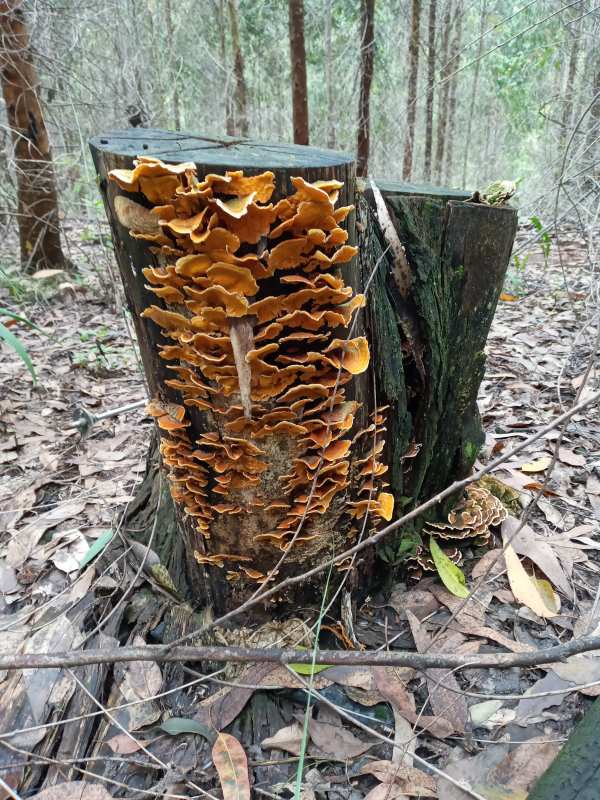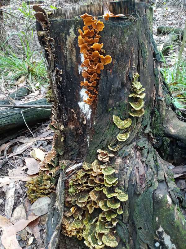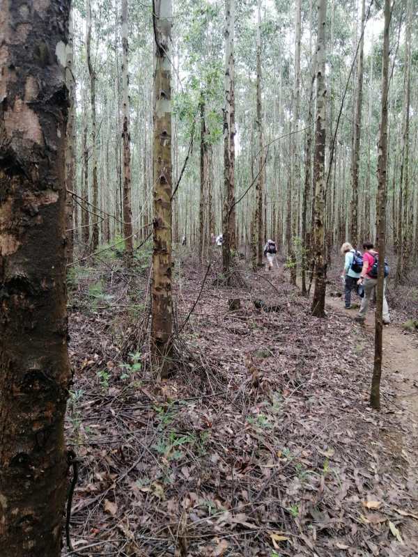 Libby led the way at about 8.15 a.m. There was a variety of paths and a variety of the degree of slipperiness - some narrow cycle routes, some broader forestry tracks with soft carpets of leaves. It was a quiet walk through the gum and pine forests except for the low chatter of hikers.