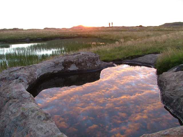 This series of pics courtesy of Dave Sclanders, taken in the Kamberg area looking towards the setting sun, shows the striking lighting changes that occur at sunset. The first pic in the series was taken at 18:05, the second at 18:26 and the last at 18:30. Hikers in the foreground of the first pic are Chantel, Teresa and Allison.