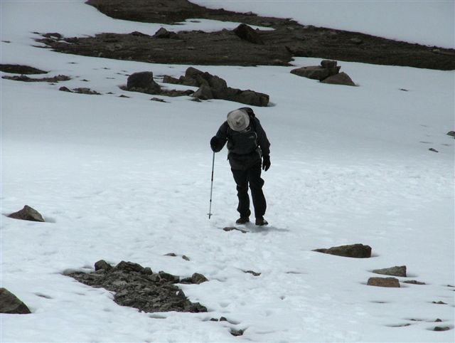MARCH 2007: Peter Wedge nearing Austrian Hut (Mt Kenya)