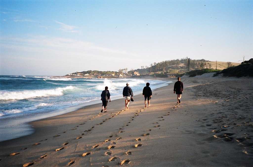 From the Sept 2007 report by Mark & Mary Nellist: Kwelapha Cottage, this photo of the foottrails of four hikers walking along the beach towards Rocky Bay. Mildly disturbing the symmetry of the pattern is a partial set of prints which appears to join the third persons tracks - see of you can work it out! (Click on the photo to give an enlarged image)