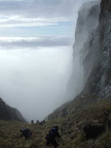 Submitted by Keith Ashton,this photo showing the wet and misty conditions during the MHC Re-Supply Team's descent down Bannermans Pass. From the April 2007 Report: Grand Traverse Re-Supply