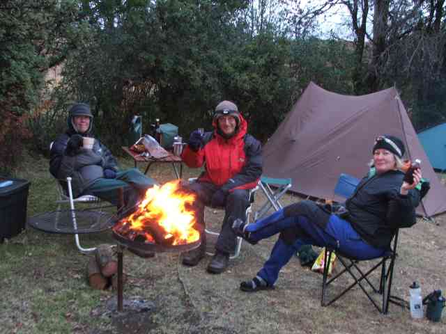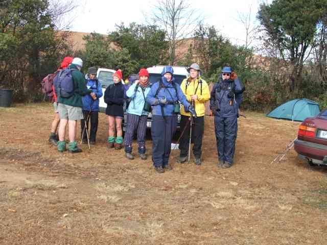 Snow was scattered across the top of the high berg , and with the cold wind blowing , camping or hiking along the top of the escarpment would be very cold and ugly. On arriving back at the cars , tea was made to warm up , then the day visitors headed back to a warm home and bed. The remaining 4 hikers , Keith, Margaret , Terresa and Dave , got themselves ready for a cold evening in the fresh mountain air. A long hot shower was the order of the moment for Teressa.