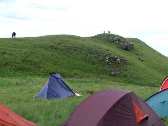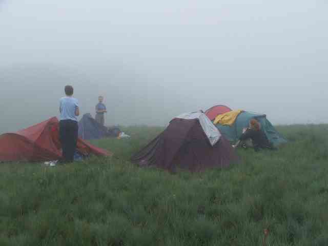 At lunch time the rain came down so we decided to set up camp and the rain rather accommodatingly stopped for a brief while so that we could get our tents up before the real deluge started. By that time we were sipping tea from the comfort and dryness of our tents.