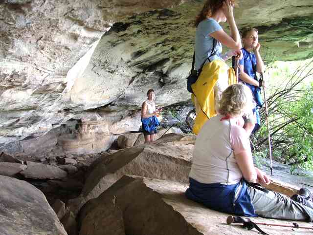 After the usual adjusting, putting on plaster, sunscreen and any other vital rituals before the start of a hike we set off to find our ‘lost’ cave. Unfortunately, 500m down the track our wise leader decided much to the relief of all in the party, that the waist deep Bushman’s River was too dangerous to cross.
