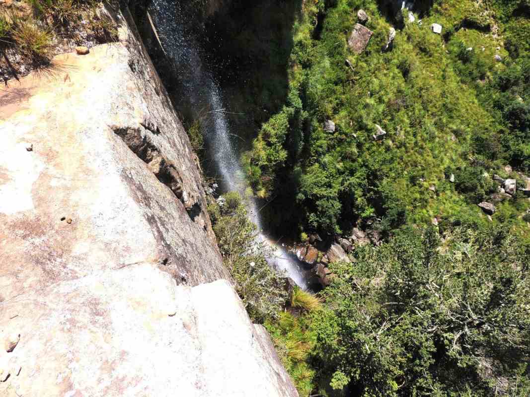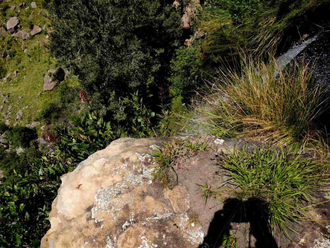 FINALLY, the top of the falls was reached, by now the days temperature was sky high, the sky was blue, and a number of us had also "blown it". For the more hardy, a quick look down the sheer sides of the cliff we were on top of, then a great migration to different preferred lunch spots - trying to find shade where there was none. Hot sandwiches in the hot sun is not really very appetizing. Maybe sitting on a rock on the edge of the cliff was probably the coolest place to be, some cool wind and the occasional spray coming from the waterfall.