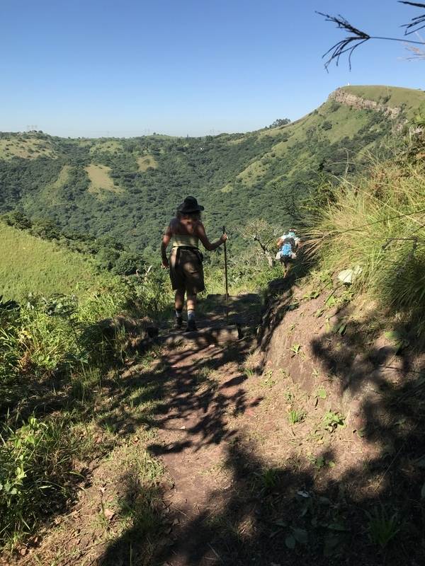 The mist lay thick over our house in the Palmiet Valley, Westville, but by the time we wended our way up to Giba Gorge we were greeted by a beautiful clear blue sky over a deep green valley. This was a wonderful start for us, our first hike with the lovely people of the Midlands Hiking Club. Our hike was led by Brian Henwood and the total group amounted to fifteen.