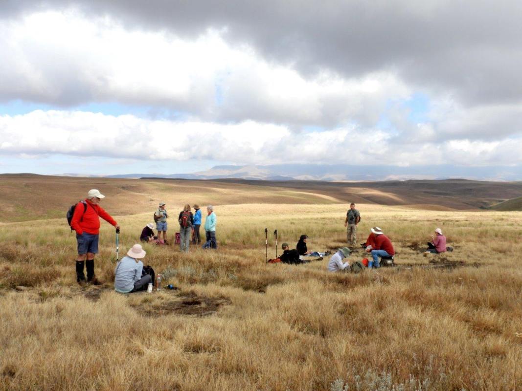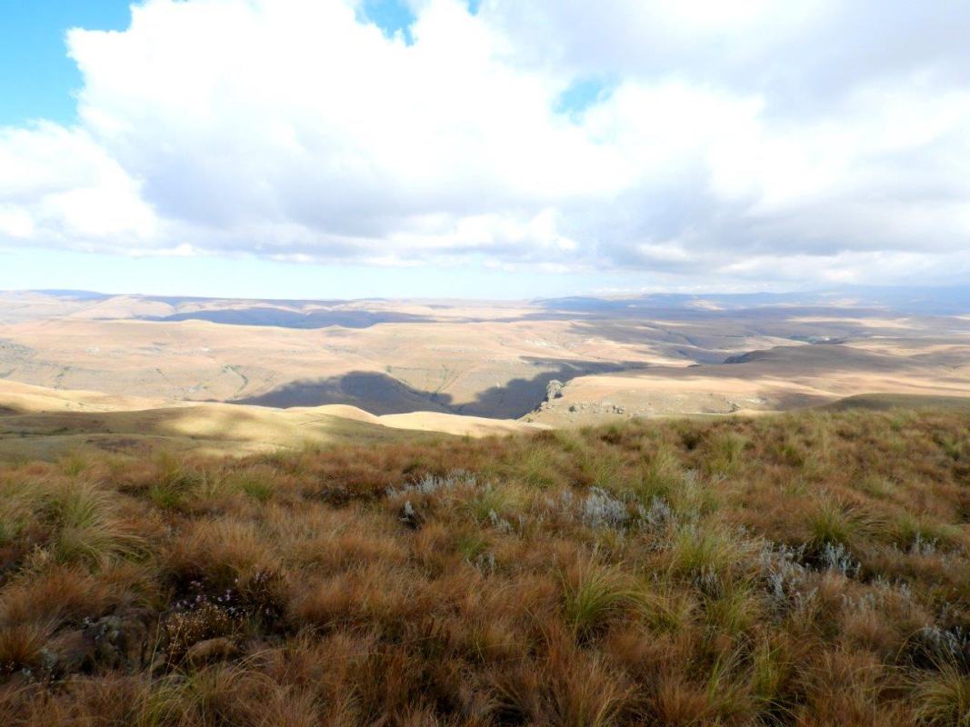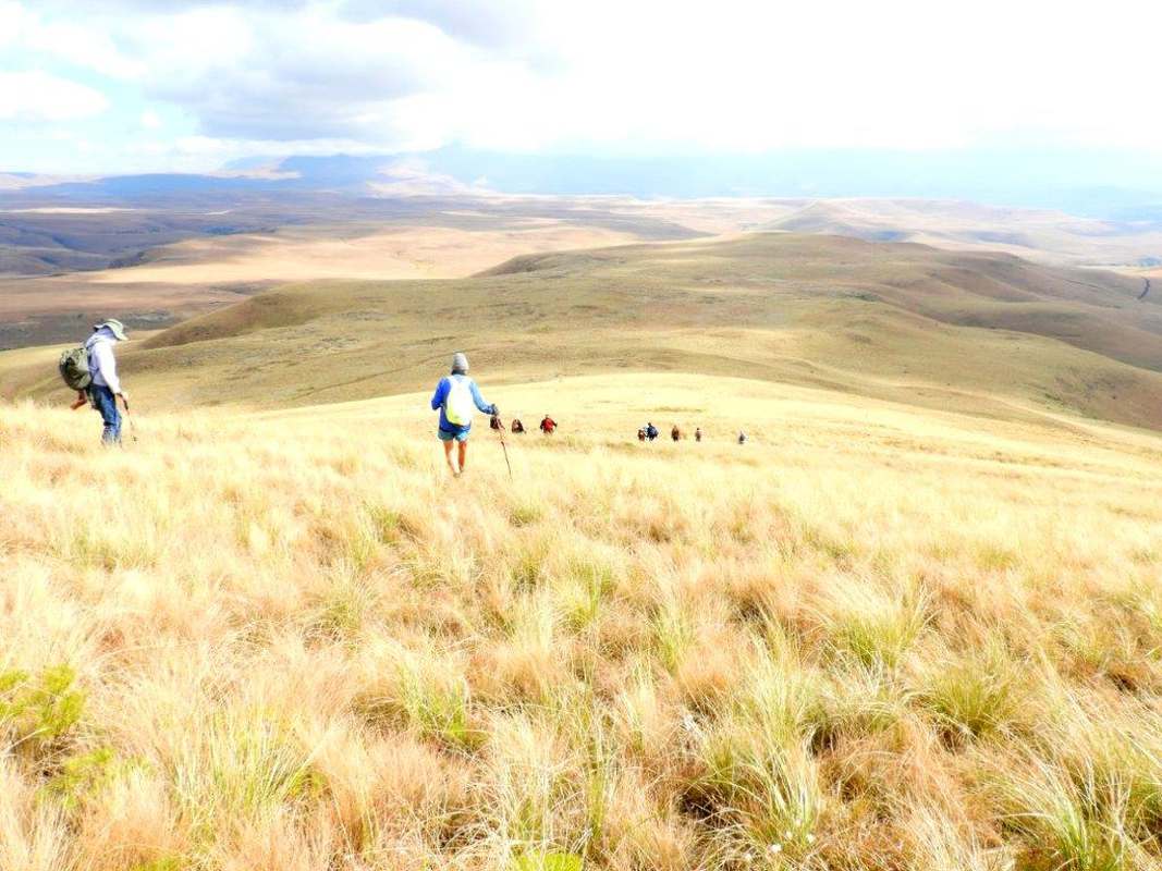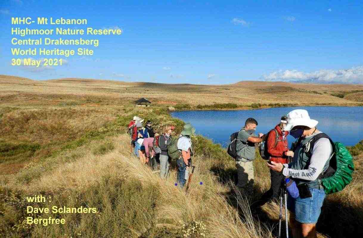 Our first sighting animal sighting of the day was two horses grazing on the brow of a hill with Giants Castle behind them, and then there was a group of baboons out on the hill top starting the long day of scavenging for food under rocks and tufts of grass. Walking was difficult as the early sun glancing of the dry grass through changing shadows that in place, hid out yesterday’s path most effectively, setting us off course now and then. The big trick was to get back to the path as soon as possible. Highmoors high hills may look flat, but hidden in the flatness are small gullies and steep drop-off caused by the small streams staring their long trip to the ocean. These little gullies can cause a long day to become much longer and harder than one could imagine. Remember one thing about walking in the berg, there are NO shortcuts. These winding paths were made eons ago by the wild game in the mountains, who founded and caused many safe paths going from A to B .Regular stops were taken to check the wonderful views around us, because sooner than later we would start the short steep climb to the top of Mt Lebanon.