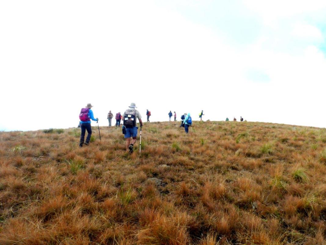 Mt Lebanon loomed, the path was hidden under long grass, and in places washed badly making walking quite difficult. A slow steady ascent at each hikers own pace and path, and soon all were on top.