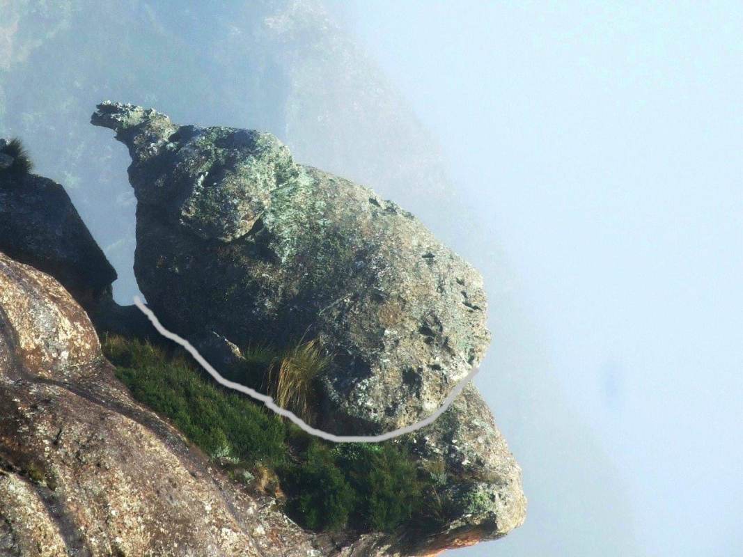 From his collection of hiking photographs Dave Sclanders has compiled a series of interesting rock formations which have been eroded by sand, wind or water to resemble, with a little imagination, various figures. Have a look at the photos below and see what you think they resemble. The LOCATION of the rocks and Dave's own thoughts on these images at the time he photographed them are recorded below each set of photos. NOTE: In some of the photos Dave has outlined the area to look at