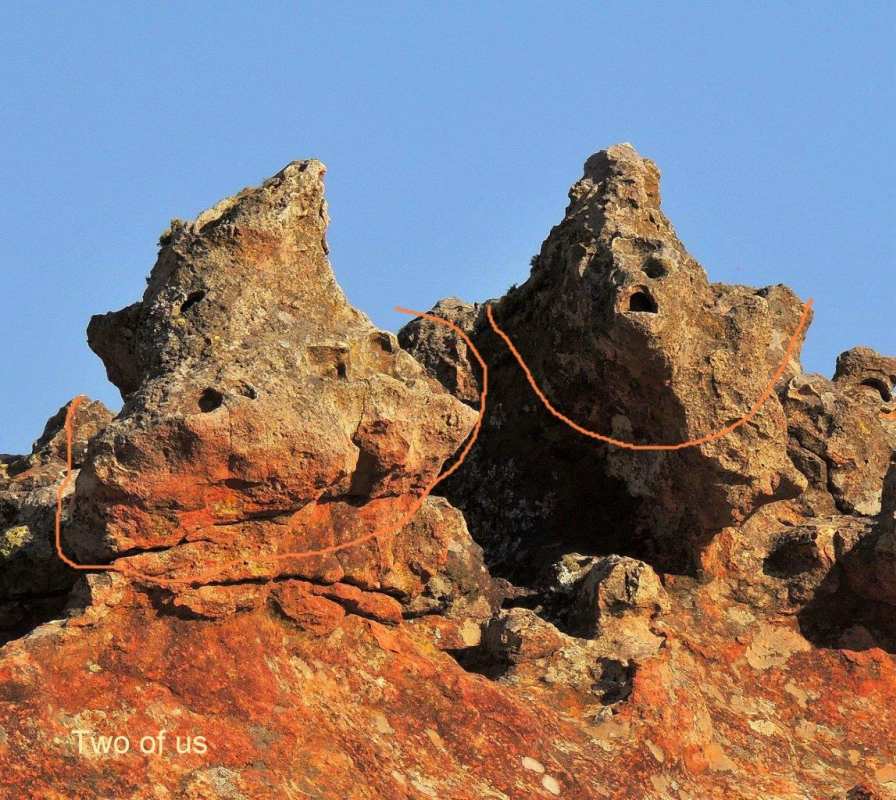 From his collection of hiking photographs Dave Sclanders has compiled a series of interesting rock formations which have been eroded by sand, wind or water to resemble, with a little imagination, various figures. Have a look at the photos below and see what you think they resemble. The LOCATION of the rocks and Dave's own thoughts on these images at the time he photographed them are recorded below each set of photos. NOTE: In some of the photos Dave has outlined the area to look at