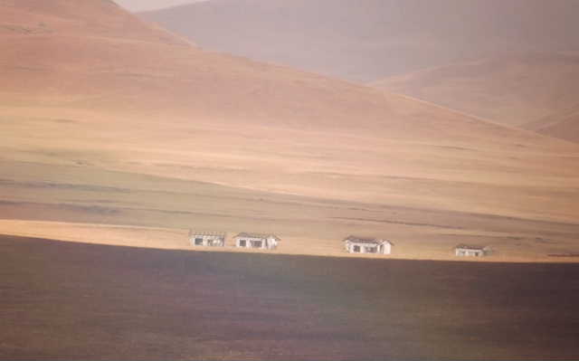 In the middle of no where, on a bleak and wind swept open plateau, the remains of a long forgotten border post of the Mountain Kingdom of Lesotho. See Dave Sclanders full report and pics at: