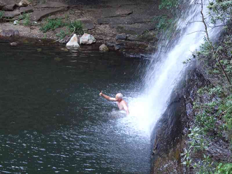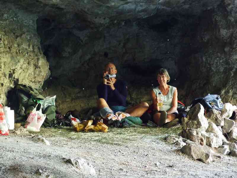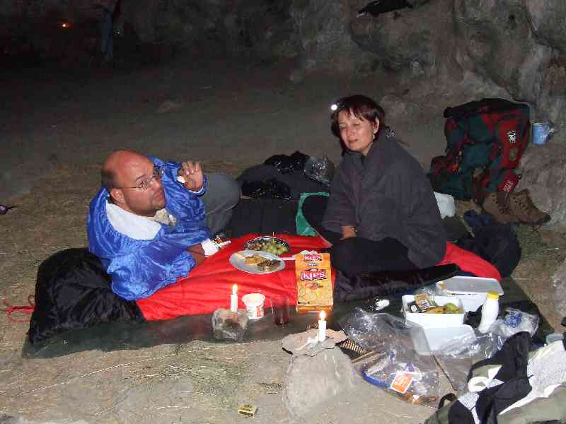 At the cave was a waterfall, that fell into a nice pool, so one could cool off easily after a days hike. The cave was lit with a multitude of candles at night, giving a “fairy grotto like” atmosphere. Supper was whatever special one had brought with , from steak, eggs, mushrooms, tomatoes , to the more exotic spread of fruit , nuts, chips and champagne. Then straight into your sleeping bag, with the waterfall pounding just a stones throw away.