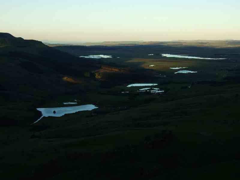 The sun setting on the farmlands far below us, showed the many farm dams a sparkling jewels in the evening twilight. The early sun rise on the mountains showing wonderfull colours in the clear fresh air, then gradually warming to the more usual colours that the “late comers” to the berg see . The grasslands were a maize of colours, flowers , grasses, sedges – all in brilliant colours and shades.