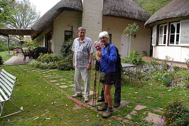 On our arrival John gave us a few hiking options and we chose the 16 km roundabout hike via Swissland Cheese, Mole Hill and the Fifehead Dairy. After hot coffee and muffins, in a rather chilly morning, we were more than ready to tackle the well-marked trail through natural vegetation and along private farm roads. After a casual 2 hour walk we arrived at Swissland Cheese perched on a ridge overlooking the beautiful Lidgetton Valley. This was an ideal spot to relax with smoked goat cheese and garlic-flavoured melba toast while sharing the warm sun with the white goats that were already lining themselves up for their afternoon milking session.