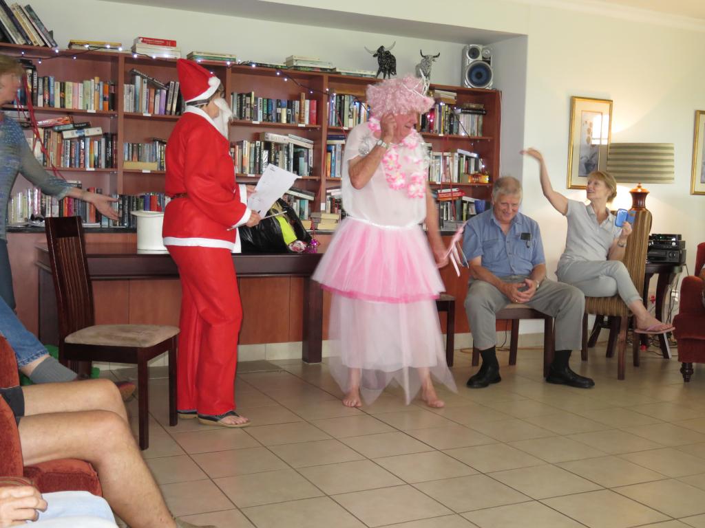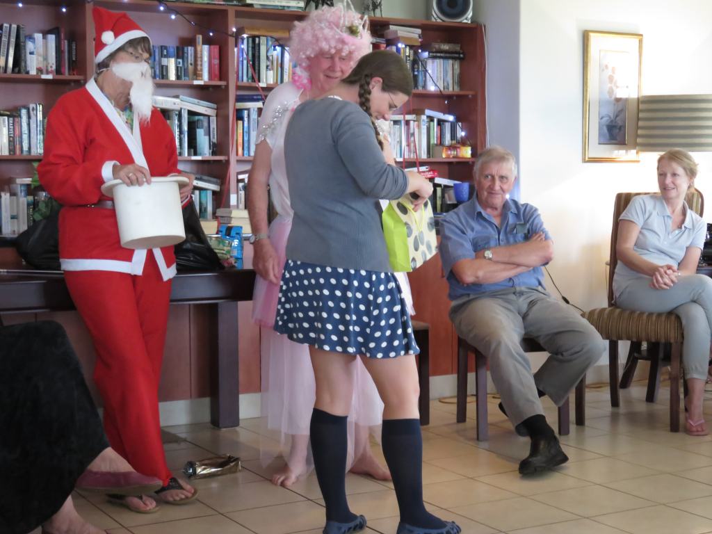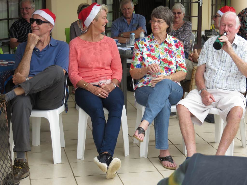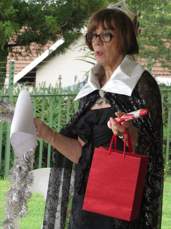 Judging the "Best Dressed Character" was carried out by Chris Dobson's family who on a visit from the UK had joined us for the day. The characters lined up and each explained their character, though some i.e. the Ogres, required very little explaining! Chairman Neville decribes the characters as "We had all types - Little Red Ridinghood, vicious ugly frightening ogres, sweet innocent Gretel with her somewhat retarded brother Hansel, the wicked (muslim) witch, the evil Queen, Puss in Boots, a lovely lady with Christmas tree earings, many reindeer and elves, and of course Father Christmas himself with his delicate, petite sidekick, the gorgeous Christmas Fairy who gracefully handed out desperately sought-after blessings with a tap to the forehead". Congratulations to the winning Ogres 1 and 2 (1st), and to Little Red Riding Hood (2nd).