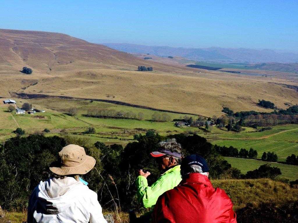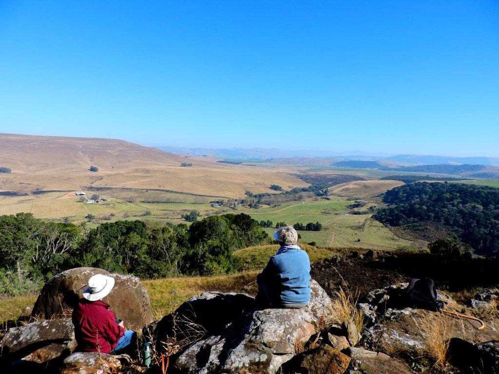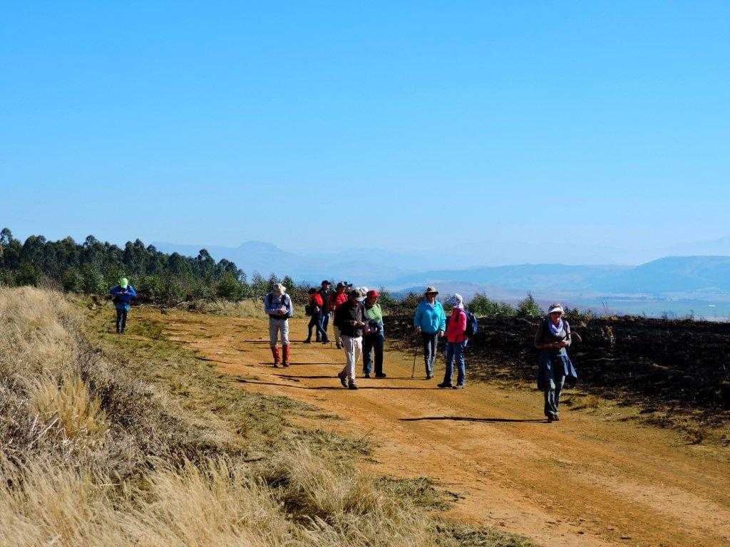 The plateau is a large pine and gum tree plantation, but fortunately there are paths and roads on which we walked that kept us mostly on the edge of the plateau. From different vantage points we had a great 360 view of the surrounding valley farms and towards the west, the high escarpment of the Drakensberg.