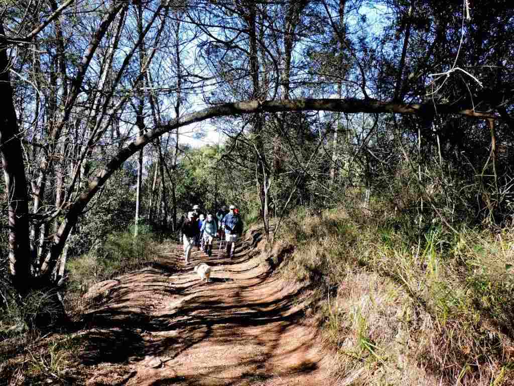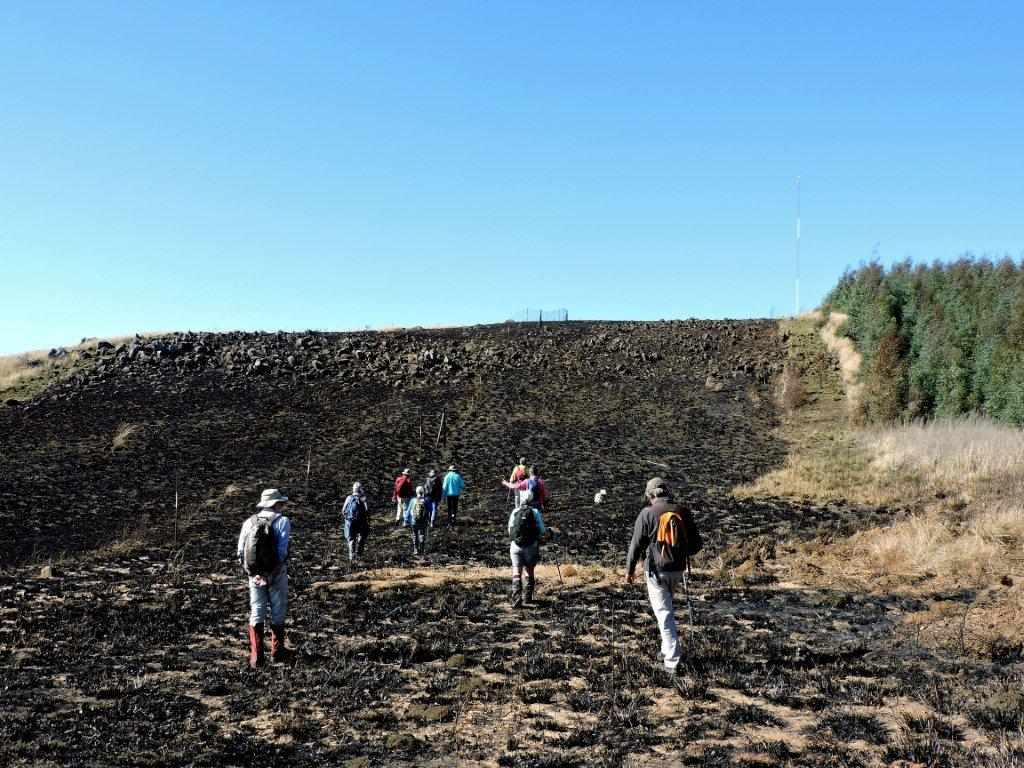 In some areas some choose to walk in the burnt area as this was on the edge of the escarpment, and gave views of the farms below, and others choose to stay on the road and go through part of the forest, and miss the views.