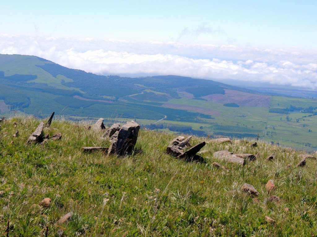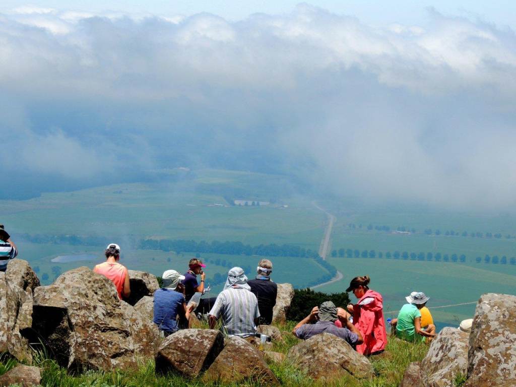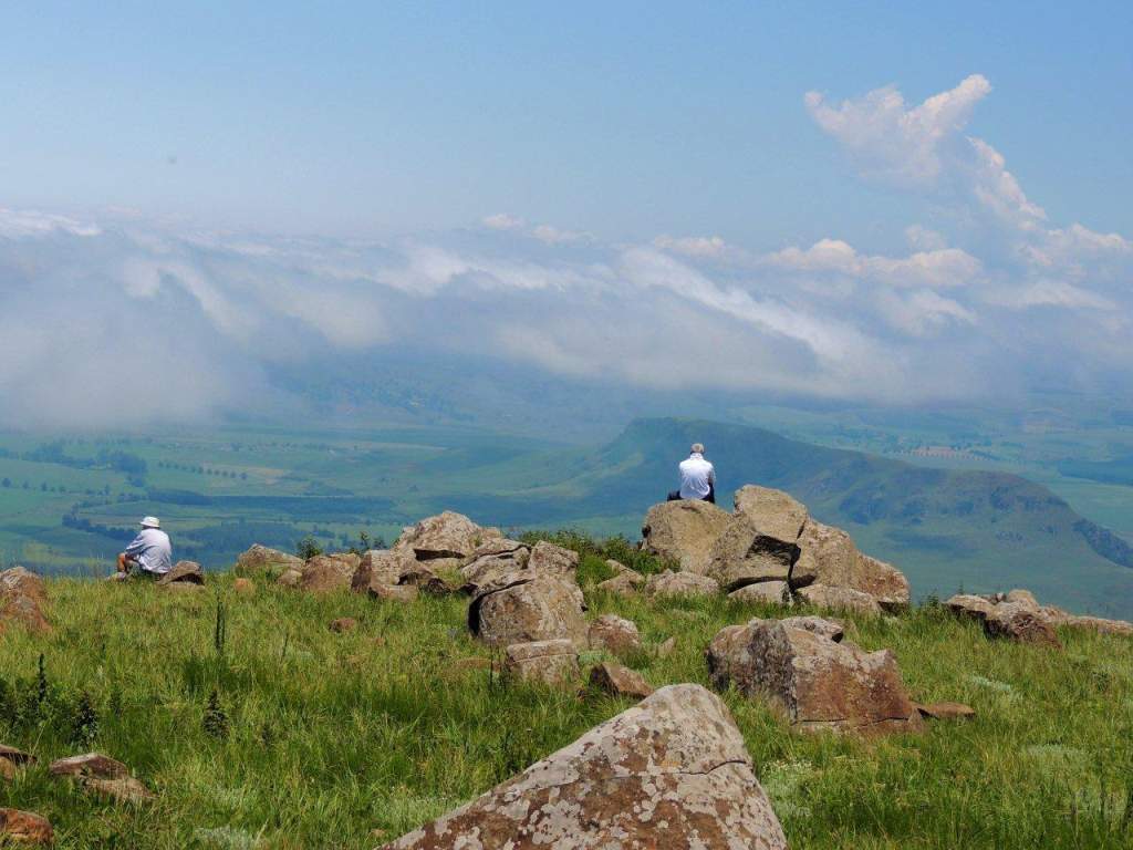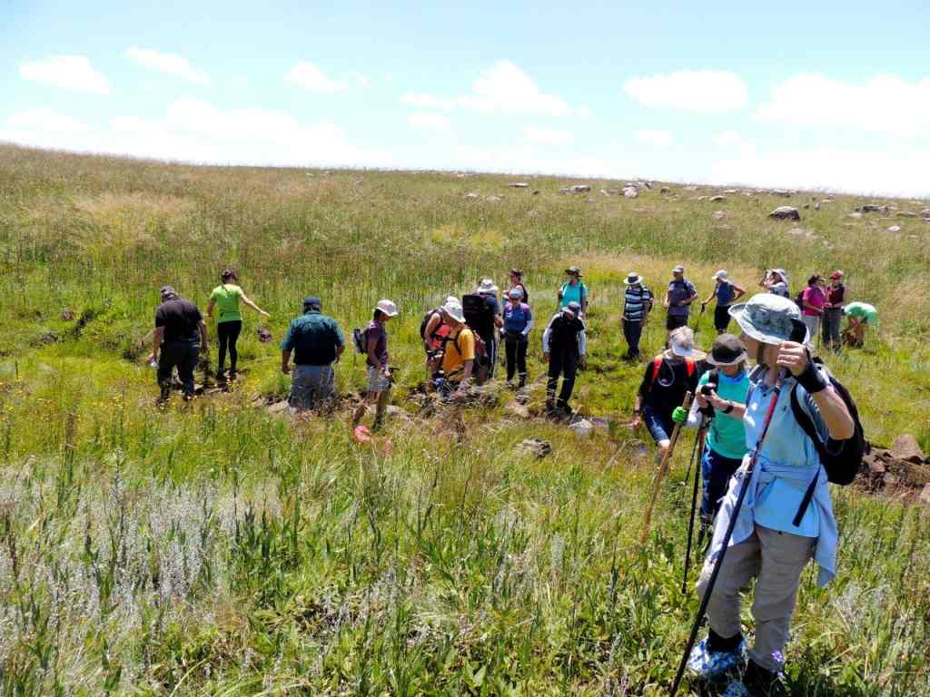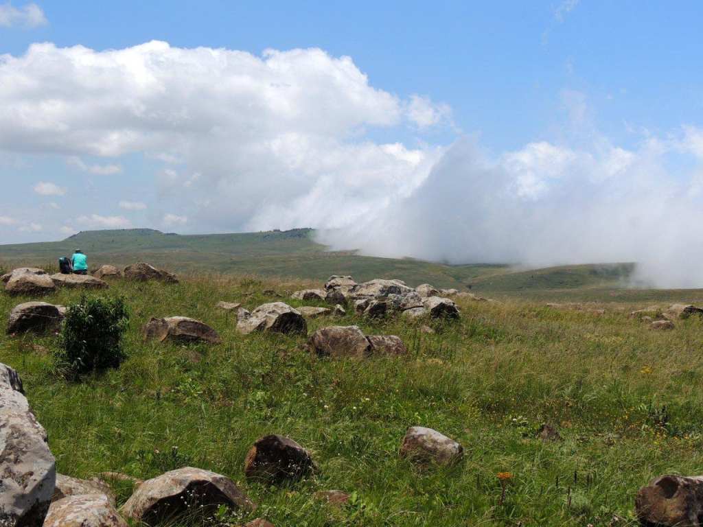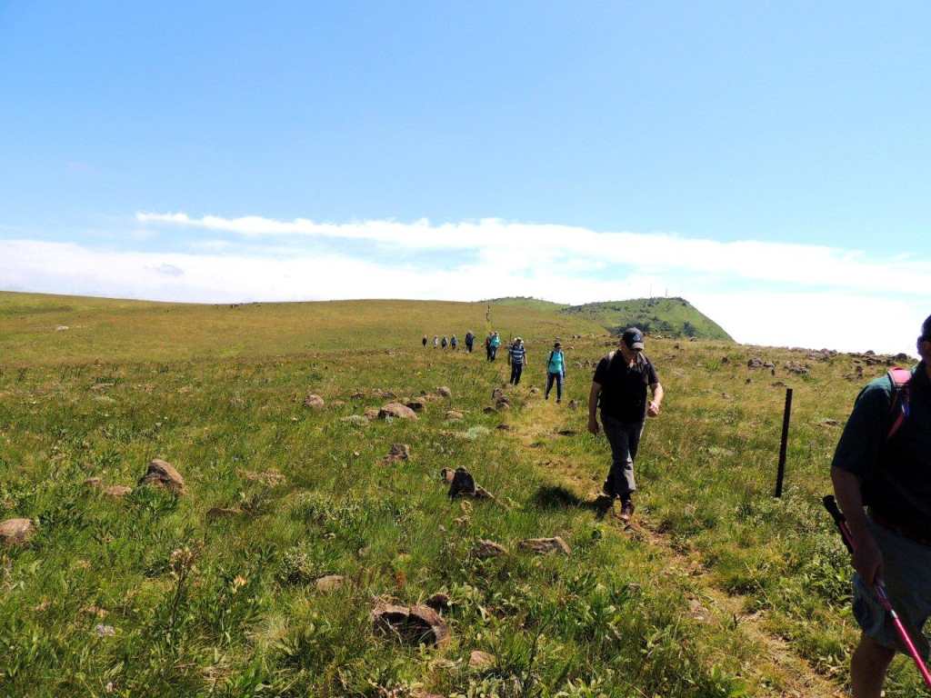We met at the appointed time and place, with still an overcast misty sky overhead, and headed to our start point. On arriving at our start point, we were greeted by a clear sky above, and mist still hanging in the lowlands below. We would be walking along the edge of a large plateau looking down to the agricultural lands far below on our left, and a very large vlei and water shed area to our right.