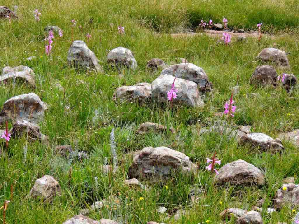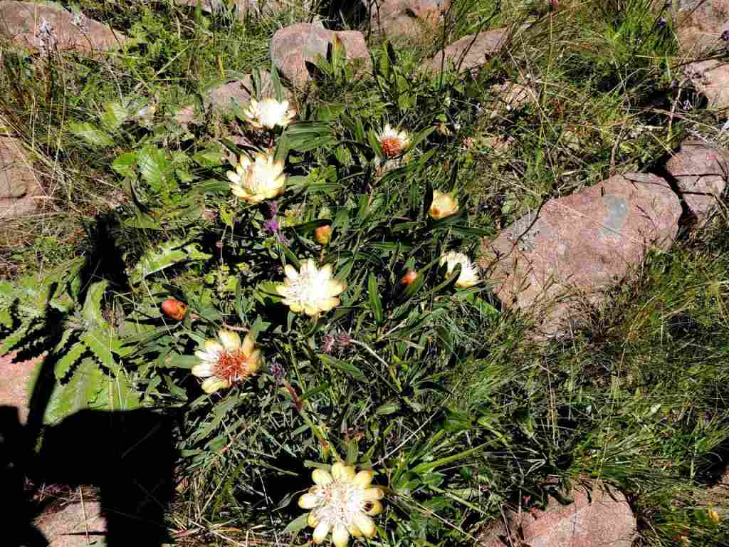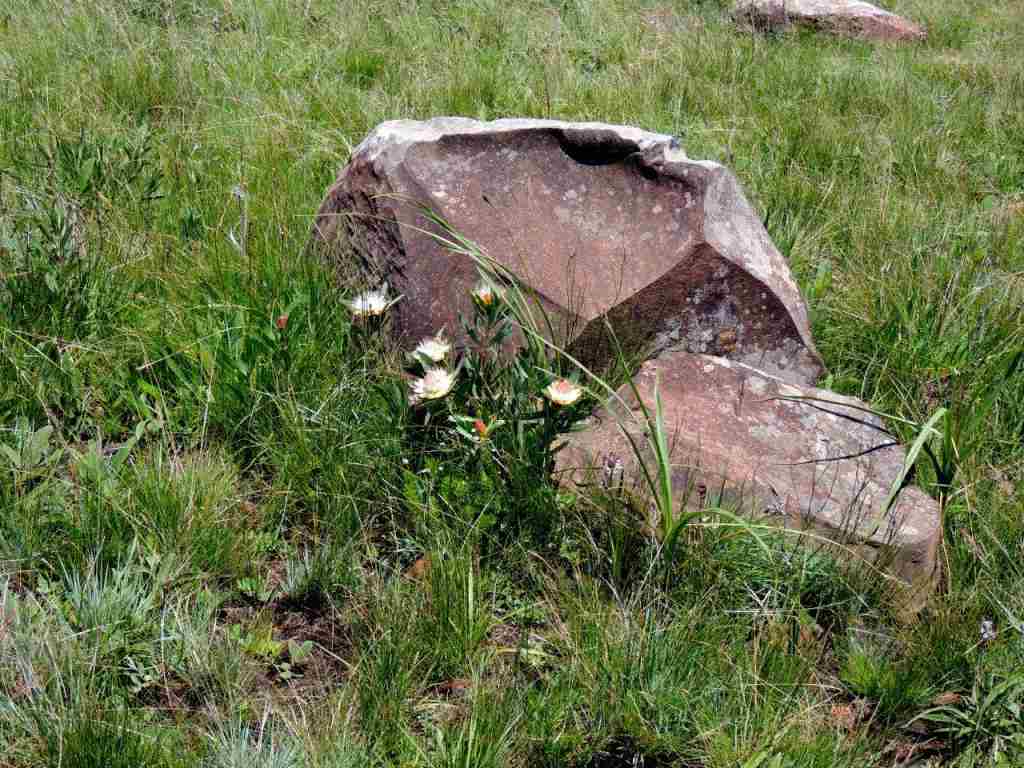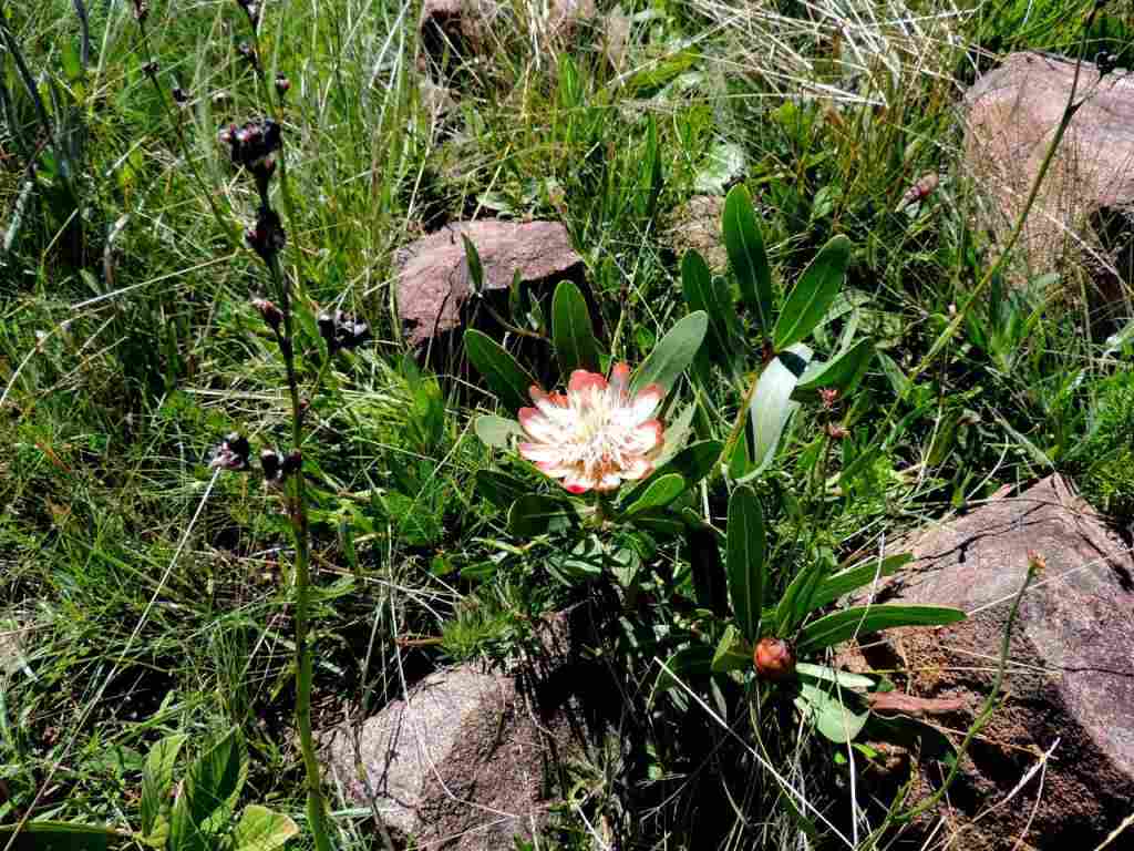 On our way we had seen a number of mountain flowers , amongst them clumps of Protea dracomontana , Watsonia and Brunsvigia natalensis.