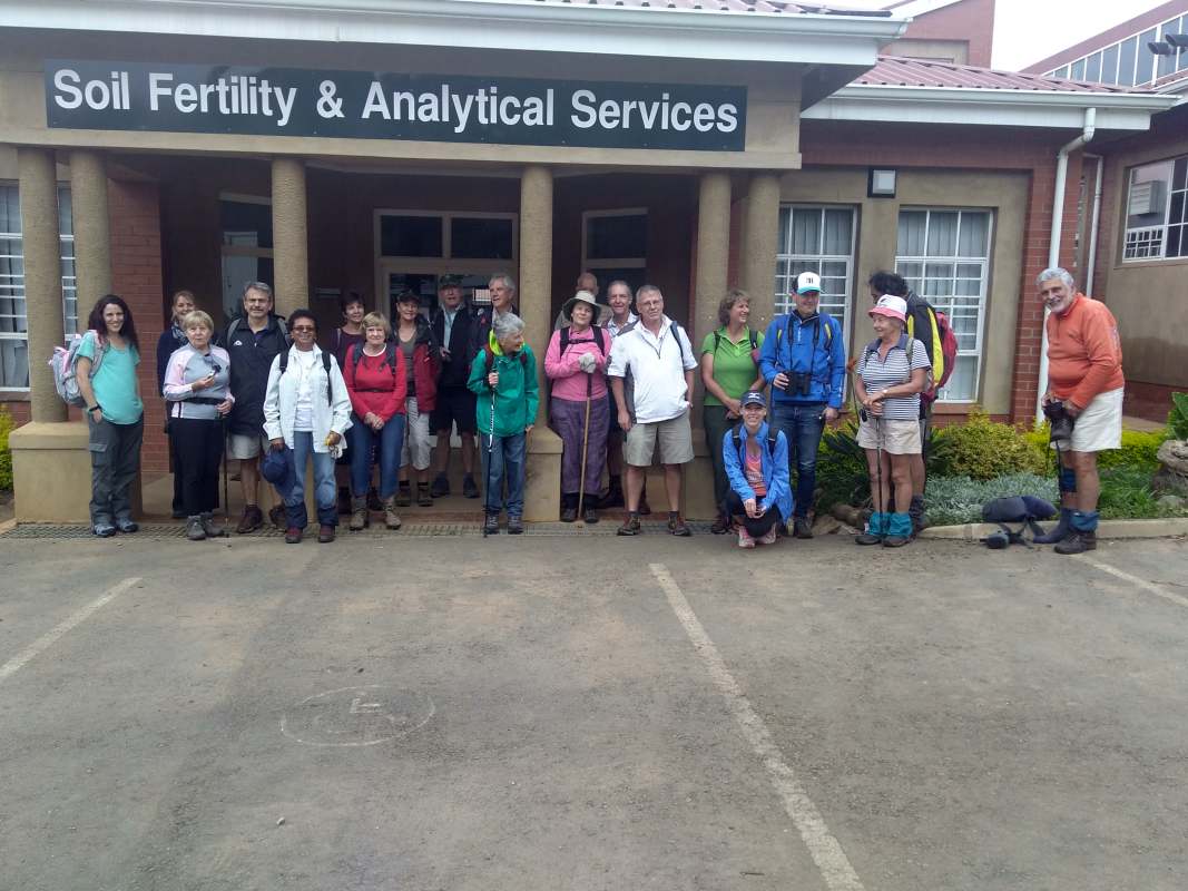 We all met at the Rotunda, shared transport and drove to the Soil Science laboratories about half way up the Cedara main avenue, lined with azalea bush and liquid amber trees. After a brief introduction to Cedara we set off towards the Dept of Agric HQ, skirted this and on to the lecture theatres which is the start of the road leading onto the farm proper. (This is also the start of the Swartkop hike)