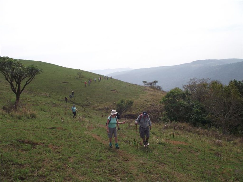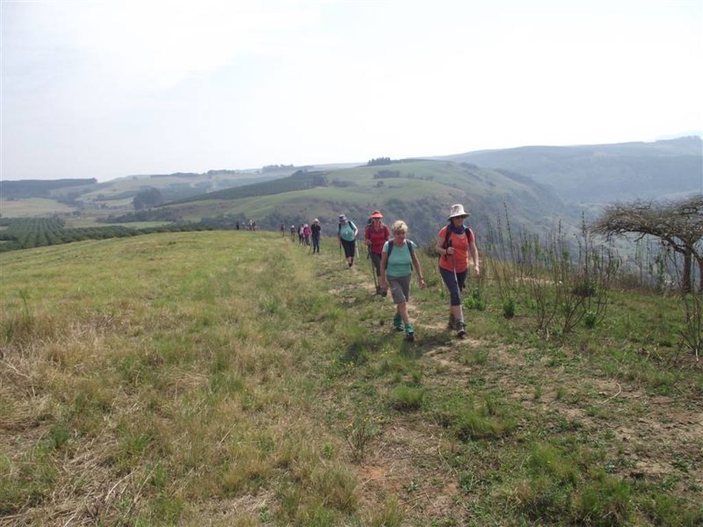 After the break was a serious uphill with plenty of heavy breathing and not much chatter, but then it was steeply down with good views of Karkloof Spa - this is a marvellous reserve with luxury accommodation and all you would expect (and more) including indoor and outdoor swimming pools, Jacuzzis, wet rooms with sprays from every angle and dry rooms with sauna - game drives are included and several Thai Masseuses are there to pamper and rejuvenate you - Pity is, very few can afford this luxury.