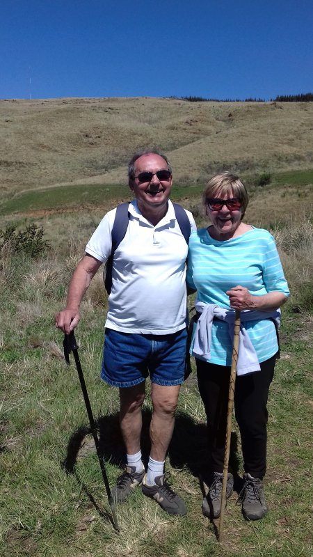 Photo 8: Heather and James taking a rest and propped by their sticks.