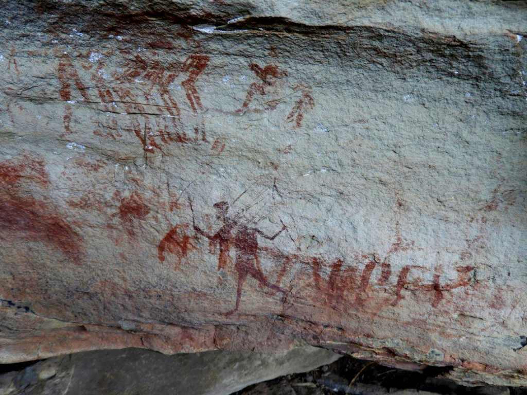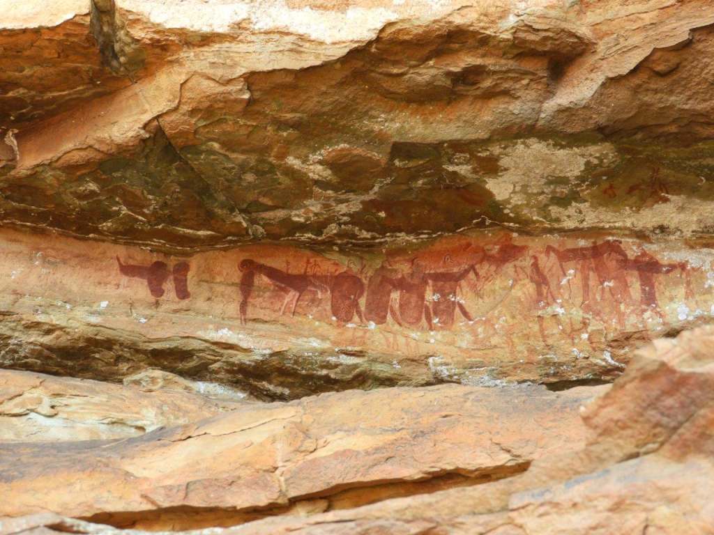 Once down the steep cliff slope, lunch and a rest was had in another cave, while those who were stronger visit to nearby caves to inspect them. The path up the valley down to the cars really was overgrown with porcupine grass (a grass with long hard round porcupine quill type grass leaves) which were sharp and difficult to walk through. The path was very overgrown, and with the small deep stream crisscrossing the path, made for hard going for a while. Further down the valley and unusual Rock Face pointed the way to go.