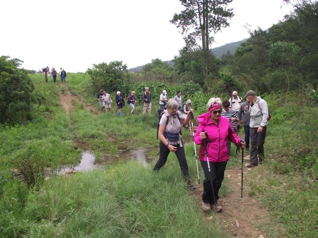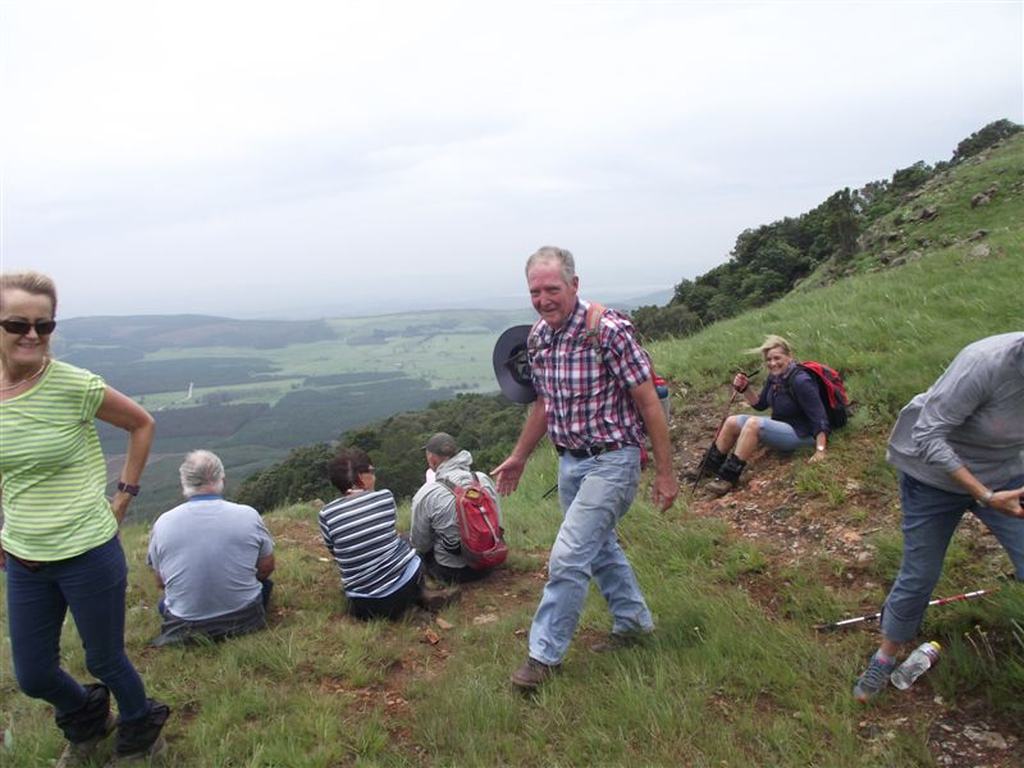 Next at 10h00 our morning hike started (for those members able and wanting to) towards the top of Mares Tail Falls in a howling wind (it was actually intended to be to the bottom of the falls but progress was quick with Carolee an uphill charge).Some members returned without getting to the bottom or top of the falls as the thought of a delicious braai was more tempting.Carolee's group carried on relentless towards the top of the falls and after about 4 km of "uphill" and heavy breathing we came out of the forest to a howling gale in which it was even difficult to stand up.