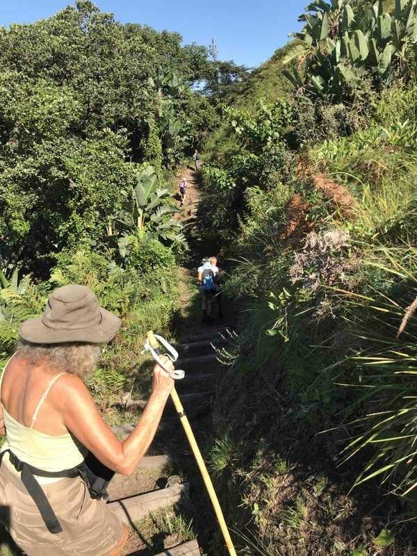 I met the first ladies from our group, Vanessa and Charmaine, and began the name remembering game, easy one-VC, but then along came Kim so it became Vietnam, Cambodia and Korea. Thereafter they arrived in drones and I had to rely on my old mind with help from my Janet to log in the other names. Chairman Andy, and Marlise, were present and Brian started us sharply, a few minutes after 8. After a photo at the Bridge over the River Kwaai, we proceeded into the cool depths of a beautiful stretch of forest.