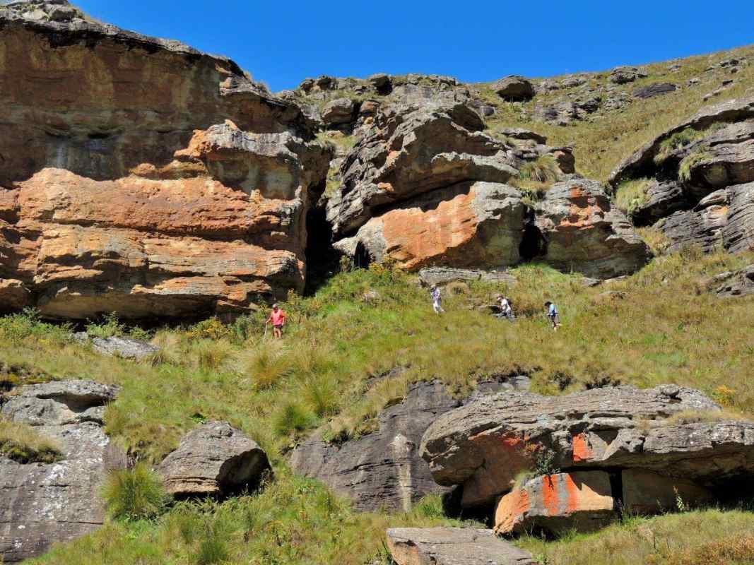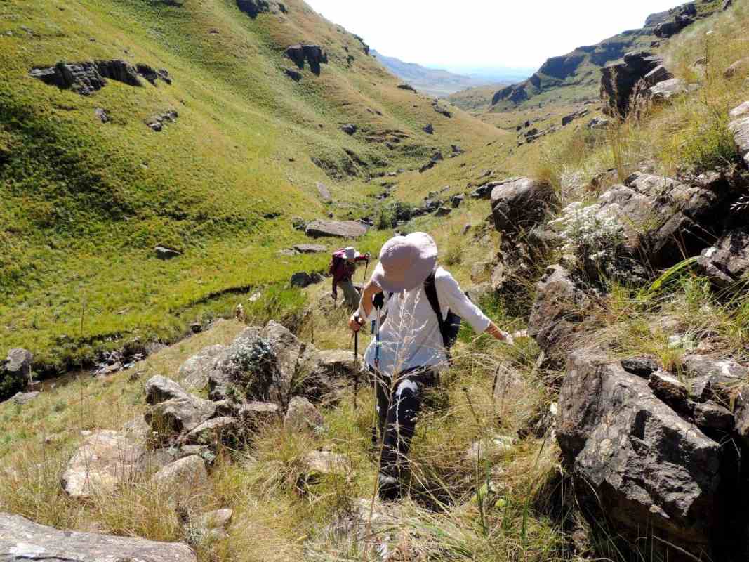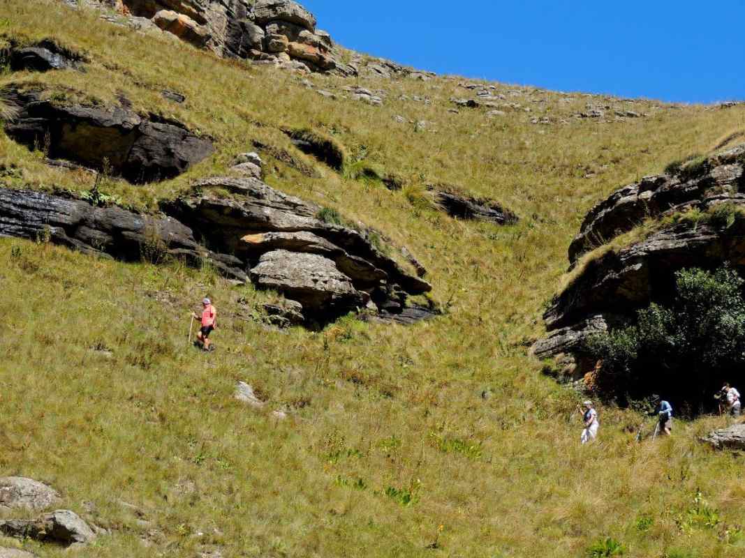 ![]() After lunch we left our lunch spot and took ourselves down the valley again. This time it was a bit easier and faster as we could follow our raggedy path which we made on the way up. With the hot weather, poor path, hard hiking, we were glad to get back to the car park. My thanks and congratulations to my hiking buddies for sharing this day together, and for helping me during the day. It was a hard lesson for me, no more hiking in my old "no where land" until the winter burning season has opened up the old paths again. A BIG WARNING to all hikers. Winter is coming fast, the grass is very long and dense, it will burn with a great amount of heat and ferociousness, DO NOT under any circumstances light any fires for whatever reason. Striking a match could have catastrophic consequences. Hike with care. Fill in the walking register properly, if a fire stars the authorities can know who is or might be in danger. Sign OUT when you get back. See our last visit to these caves under better circumstances: MHC Newsletter - Kamberg, 3 Caves, 18 August 2019 |